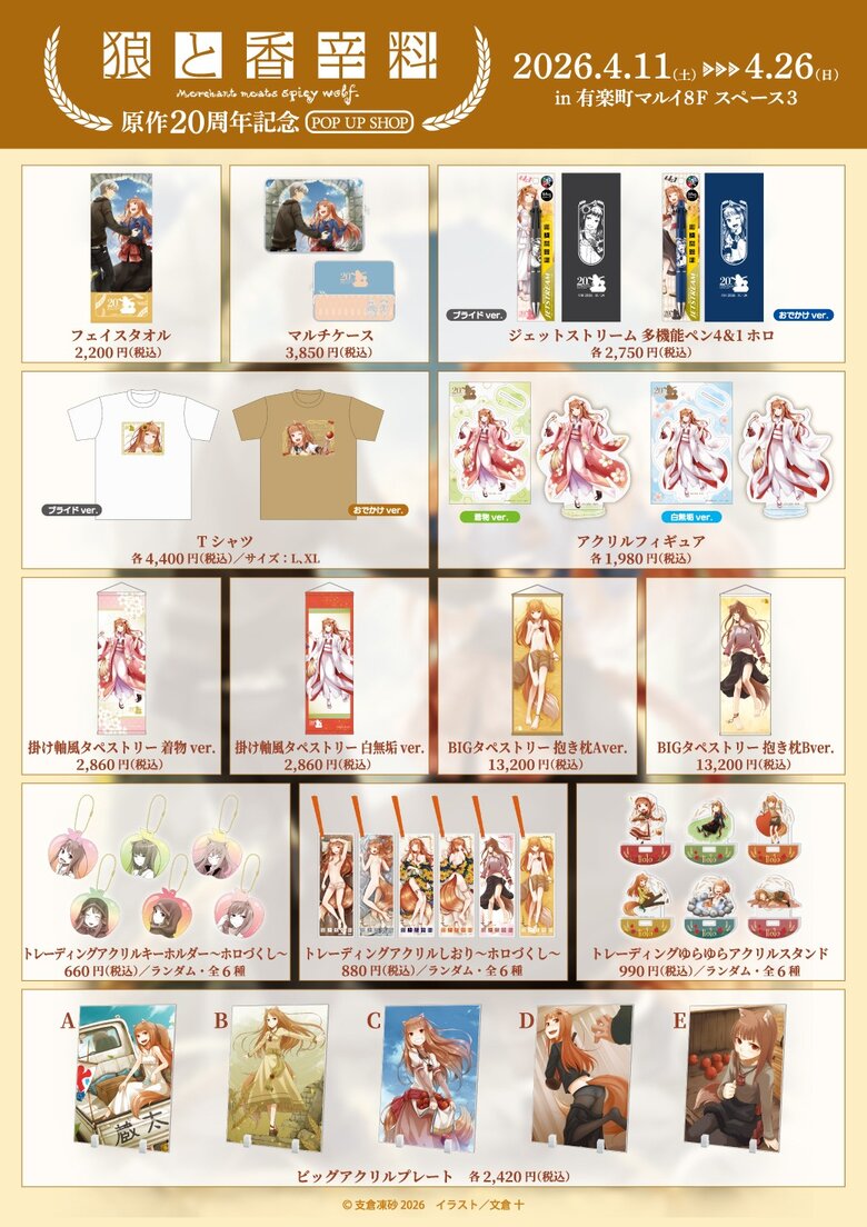 電撃文庫の人気作品『狼と香辛料』の原作20周年を記念して、POP UP SHOPとオンラインくじが開催されます!
