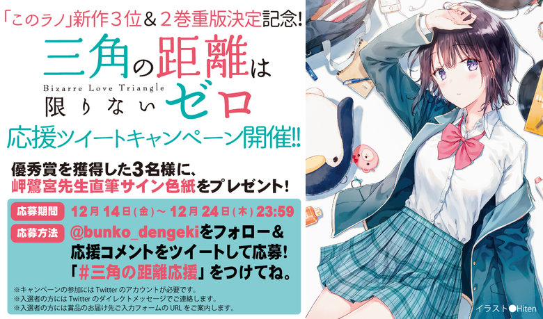 『このライトノベルはすごい!2019』(宝島社 刊)文庫部門 新作3位にランクイン! 目が離せない三角関係恋物語『三角の距離は限りないゼロ』の応援キャンペーンを開催します!