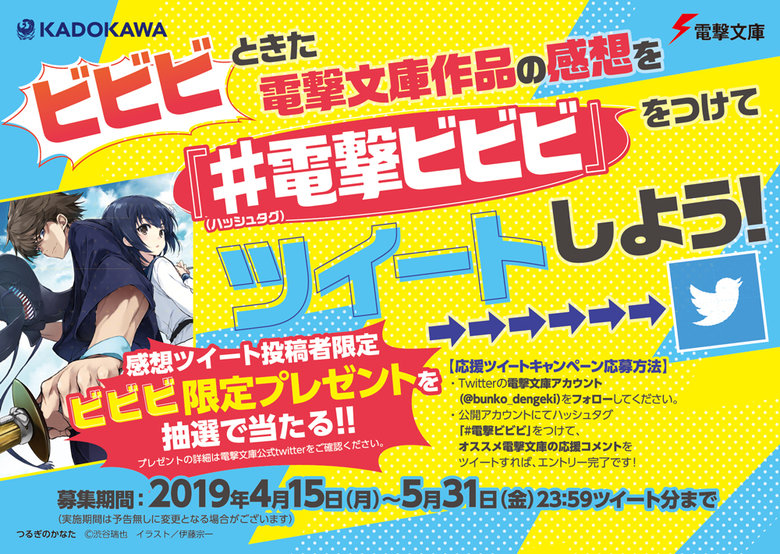 ・公開アカウントにてハッシュタグ「#電撃ビビビ」をつけて、あなたが読んで「ビビビ!」と来た電撃文庫作品へのコメントをツイートしよう!