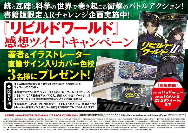 ・公開アカウントにてハッシュタグ「#リビルドワールドARチャレンジ」をつけてAR画像をアップのうえ、感想コメントをツイートすればエントリー完了です! (感想はどの巻についてでも構いません)