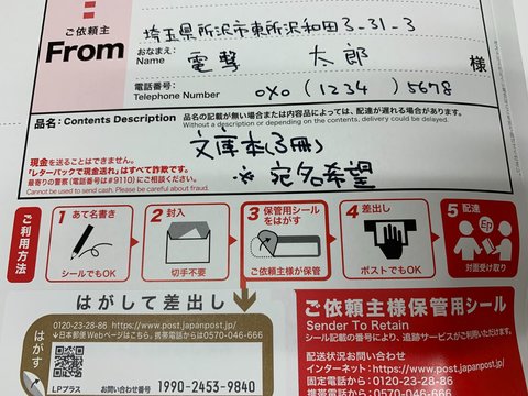 <STEP:4>返信用レターパックを二つ折りにして、対象書籍と同封して応募(必ず発送の前に「ご依頼主様保管用シール」を剥がした上、返送があるまで保管してください)
