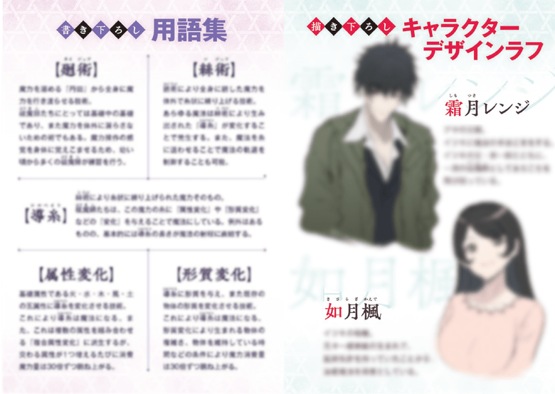 シクラメン先生書き下ろしの作中世界観解説と、夕薙先生描き下ろしの霜月レンジ・如月楓・神在月アカネのキャラクターデザインラフが掲載された、ここでしか読めないスペシャルなリーフレットになっております!