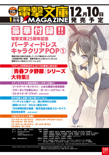 TVアニメの放送がついにスタートした『ソードアート・オンライン』を表紙と特集でピックアップ! そのほかにも電撃文庫アニメの最新情報、人気作品の短編小説が満載!!