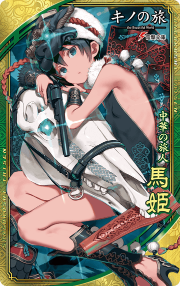 「三国志大戦」の電撃文庫25周年記念コラボとして、キノの姿の武将カード「馬姫」が入手できるアイテムコードが封入!黒星紅白描き下ろしのイラストも必見です!