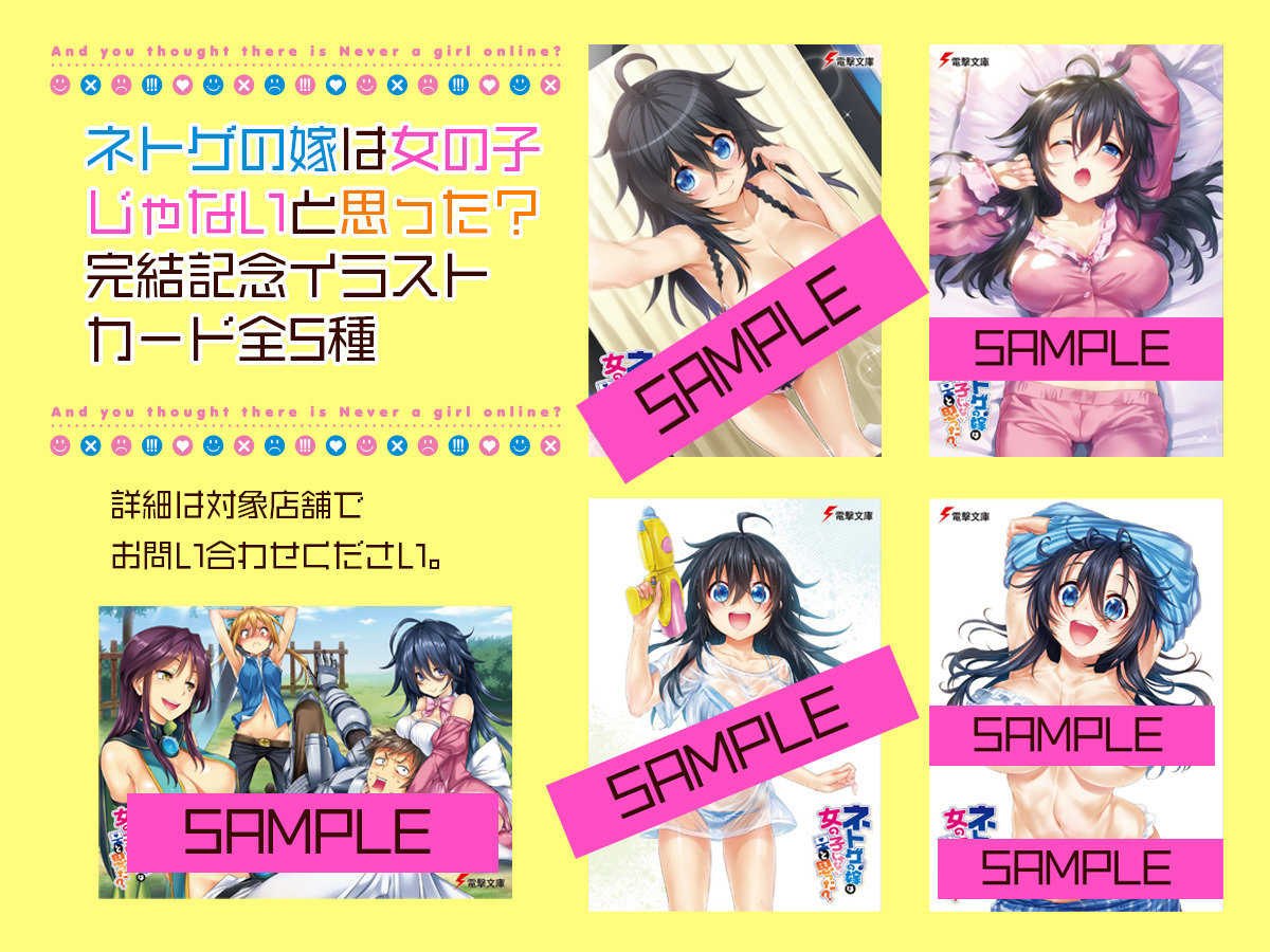 ここまで追いかけてくれて来た「ネトゲの嫁」ファンの皆様に最大限の感謝を! ……でも残念! まだまだご新規さん募集中なんです! 2016年にはTVアニメも放送され人気を博した残念で楽しい日常≒ネトゲライフコメディ『ネトゲの嫁は女の子じゃないと思った?』が2か月連続刊行にて12月についに完結!