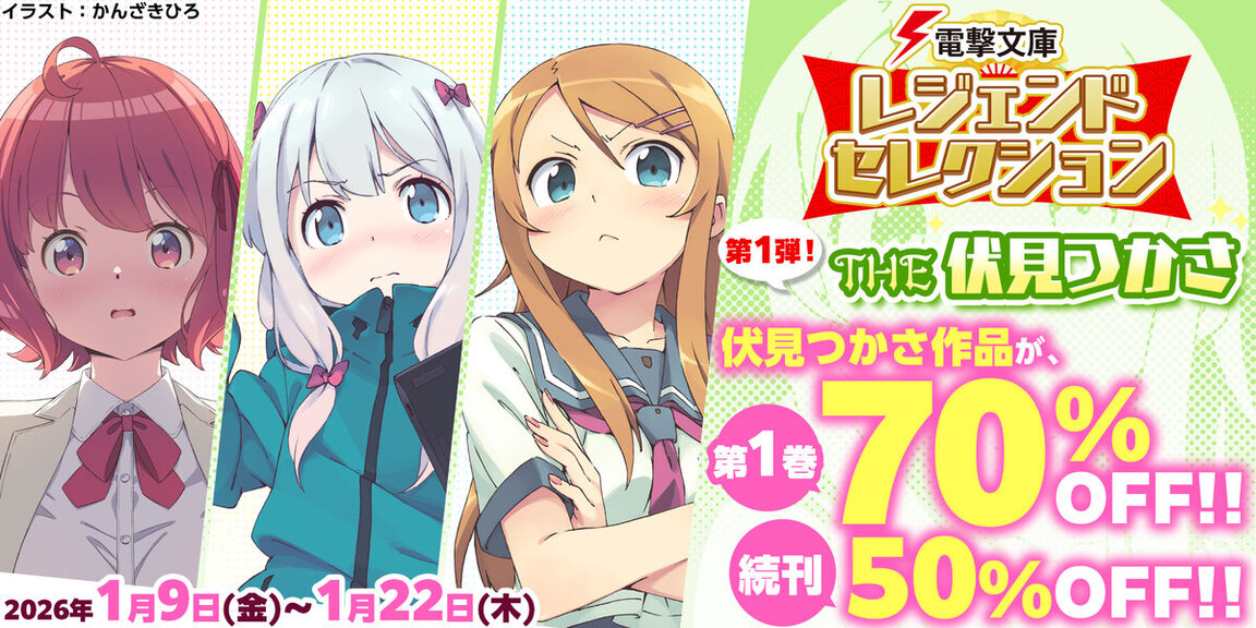 第一弾は『俺の妹がこんなに可愛いわけがない』や『エロマンガ先生』などアニメ化作品を多数の伏見つかさをピックアップ!