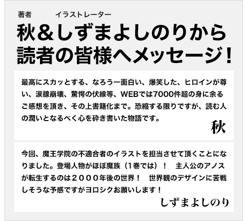 著者・秋&イラストレーター・しずまよしのりから読者の皆様へメッセージ!